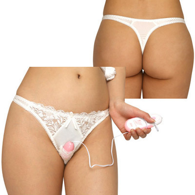 トリコット&レース生地ローターポケット付きTバック ホワイト ホワイト