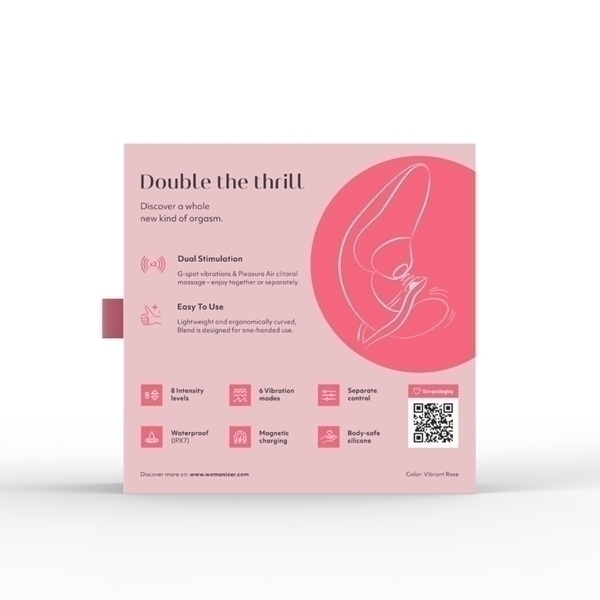完全防水なのでバスルームでも使用可能。 使用後は丸洗いでき、衛生的に使用できます。 独立した2つのモーターにより、吸引と振動を同時に、または別々で楽しむことができます。 吸引と振動、ダブルの刺激によるオーガズムを「ブレンドオーガズム」と言いますが、このウーマナイザーブレンドはまさにブレンドオーガズム初心者の方にぴったりなアイテムです!●カラー:ヴァイブラントローズ ※こちらの商品は受注発注商品の為、ご注文から発送までに3、4営業日掛かる場合が御座います。 | |