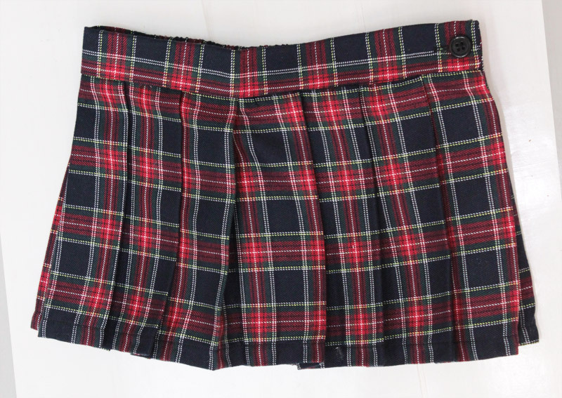 セット内容:超ミニスカート(横ファスナー、ボタン留め、ウェスト一部ゴム入) 本格的!紺と赤のチェックが可愛いプリーツスカート(M)。